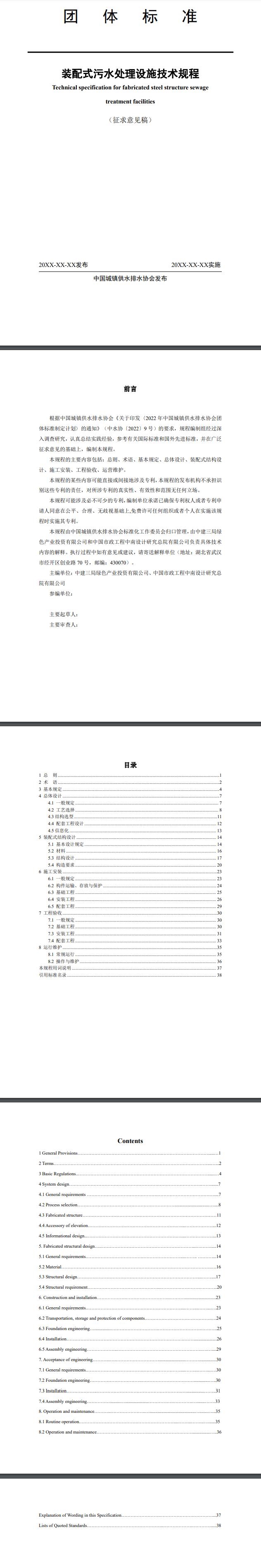 中國城鎮(zhèn)供水排水協(xié)會關(guān)于征求團體標準 《裝配式污水處理設(shè)施技術(shù)規(guī)程(征求意見稿)》 意見的通知各有關(guān)單位和專家: 根據(jù)《關(guān)于印發(fā)<2022年中國城鎮(zhèn)供水排水協(xié)會團體標準制訂計劃>的通知》(中水協(xié)〔2022〕9號),我協(xié)會組織中建三局綠色產(chǎn)業(yè)投資有限公司、中國市政工程中南設(shè)計研究總院有限公...