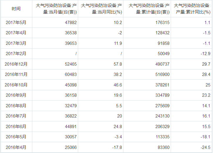 今年是“”第一階段的收官年。在國家政策與一系列舉措的高壓下,我國大氣污染治理情況取得了不小的成績,環(huán)保裝備也迎來難得發(fā)展良機,2021年產(chǎn)量將達到64.4萬臺。數(shù)據(jù)顯示,2017年5月我國產(chǎn)量47882臺,當月同比上漲10.2%,1-5月累計產(chǎn)量176315臺,累計同比上漲1.1%。預(yù)計2017年中...