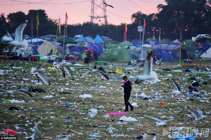 據(jù)《每日郵報》報道,當?shù)貢r間25日晚,伴隨著艾德?希蘭的演出,一連喧囂了5天的英國格拉斯頓伯里落下帷幕。連日來飲酒狂歡的樂迷收拾好他們的露營行李準備打道回府,留下整個場地被垃圾所覆蓋。據(jù)悉,清理這些垃圾需要花費78萬5千英鎊。圖:音樂節(jié)結(jié)束,著名的沃西農(nóng)場被垃圾所覆蓋圖:樂迷在狂歡之后離開,留下成堆...