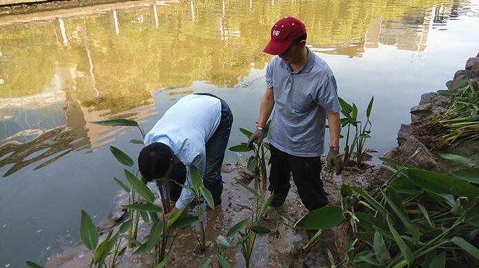 5月27日,位于長(zhǎng)寧區(qū)臨空經(jīng)濟(jì)園區(qū)的聯(lián)涇港迎來(lái)了一批綠色的“來(lái)客”——上百株再力花和金魚(yú)藻。在上海環(huán)保系統(tǒng)工作人員的幫助下,這些具有凈水功能的植物或沉入水底,或栽在河灘上。上海市環(huán)保局的工作人員把再力花栽入河灘治理河道有一定的“套路”,據(jù)長(zhǎng)寧區(qū)建交委副主任陳崗介紹,一般先要斬?cái)嗪拥赖耐庠次廴荆春拥?..