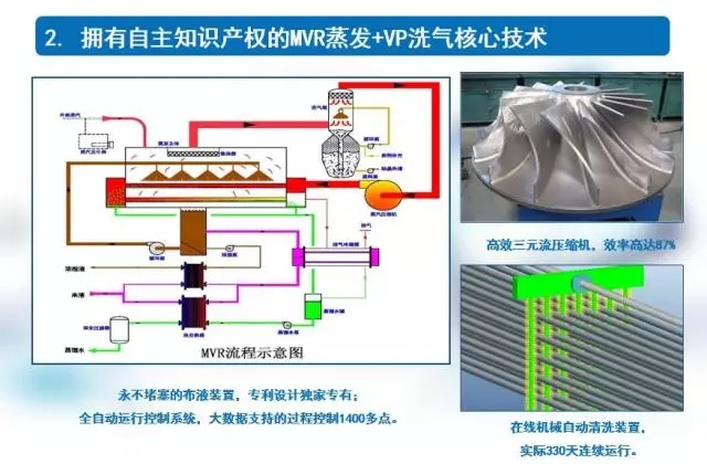 2. 自主知識產(chǎn)權(quán)的MVR蒸發(fā)+VP洗氣技術(shù)