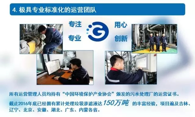截止2016年底,大連廣泰源已經(jīng)擁有累計處理垃圾滲濾液達150萬噸的豐富經(jīng)驗,項目遍及吉林、遼寧、北京、安徽、湖北、廣東、內(nèi)蒙各省。