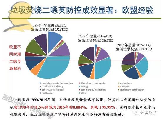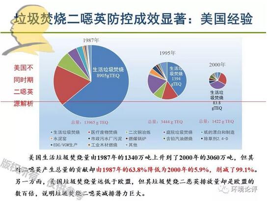 我國(guó)現(xiàn)代化垃圾焚燒起步較晚,主要通過引起消化再創(chuàng)新的方式,較好地實(shí)現(xiàn)了與發(fā)達(dá)國(guó)家同期先進(jìn)技術(shù)的接軌,在我國(guó)二噁英排放清單中過去不曾是、現(xiàn)在算不上、將來也不可能成為“帶頭大哥”。事實(shí)上,由于垃圾本身均含有一定量的二噁英,現(xiàn)代化大型垃圾焚燒設(shè)施更多地是二噁英的消減器,而不是發(fā)生器。從歐盟、美國(guó)、日本的經(jīng)驗(yàn)來看,通過技術(shù)進(jìn)步和標(biāo)準(zhǔn)提升,垃圾焚燒二噁英排放削減率可超過99%,甚至達(dá)到99.99%。