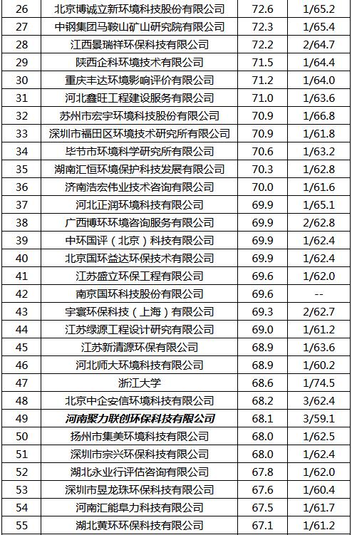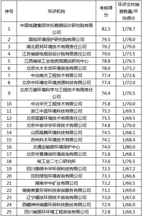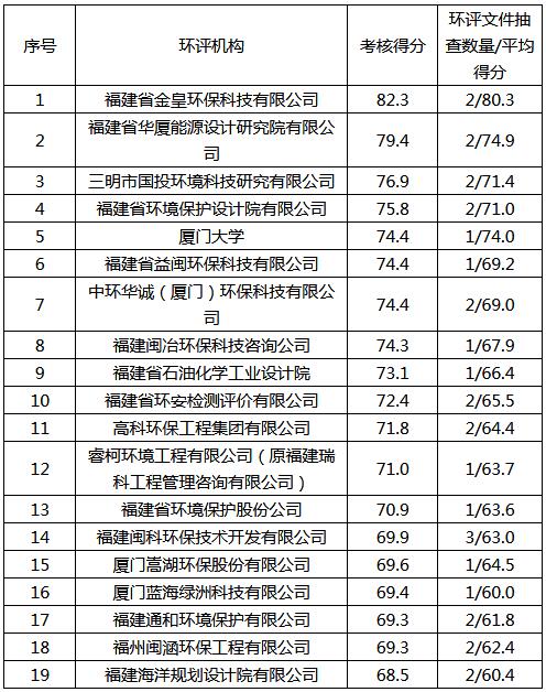福建省內(nèi)環(huán)評機(jī)構(gòu)考核結(jié)果表