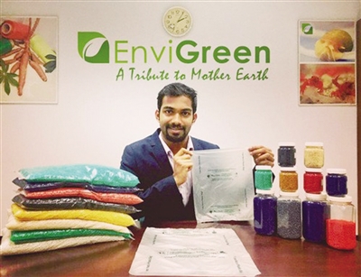 憑借這款塑料袋,小哥還入選了印度《福布斯》雜志2017年的“30 under 30”。眾所周知,做到完全無污染的綠色產(chǎn)品,成本往往會(huì)翻幾倍不止。但小哥發(fā)明的塑料袋,僅比普通塑料袋價(jià)格高出35%。