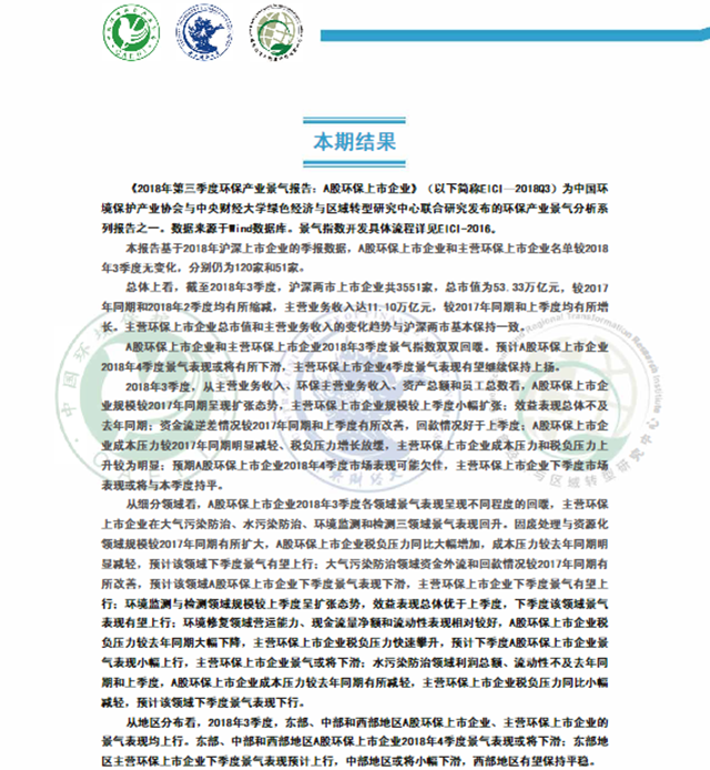 原標(biāo)題:2018年第三季度環(huán)保產(chǎn)業(yè)景氣報(bào)告:A股環(huán)保上市企業(yè)
