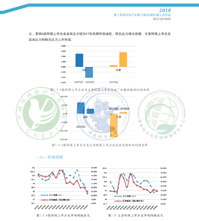 2018年3季度,從主營業(yè)務(wù)收入、環(huán)保主營業(yè)務(wù)收入、資產(chǎn)總額和員工總數(shù)看,A股環(huán)保上市企業(yè)規(guī)模較2017年同期呈現(xiàn)擴(kuò)張態(tài)勢(shì),主營環(huán)保上市企業(yè)規(guī)模較上季度小幅擴(kuò)張:效益表現(xiàn)總體不及去年同期:資金流逆差情況較2017年同期和上季度有所改善, 回款情況好于上季度:A股環(huán)保上市企業(yè)成本壓力較2017年同期明顯減輕、稅負(fù)壓力增長放緩,主營環(huán)保上市企業(yè)成本壓力和稅負(fù)壓力上升較為明顯:預(yù)期A股環(huán)保上市企業(yè)2018年4季度市場表現(xiàn)可能欠佳,主營環(huán)保上市企業(yè)下季度市場表現(xiàn)或?qū)⑴c本季度持平。