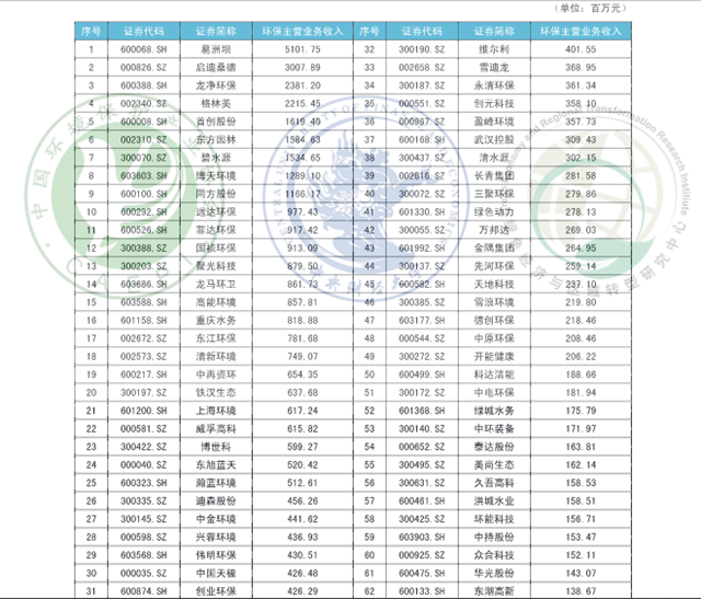 附錄B 2018年第三季度A股環(huán)保上市企業(yè)細(xì)分領(lǐng)域環(huán)保主營業(yè)務(wù)收入情況(單位:百萬元)