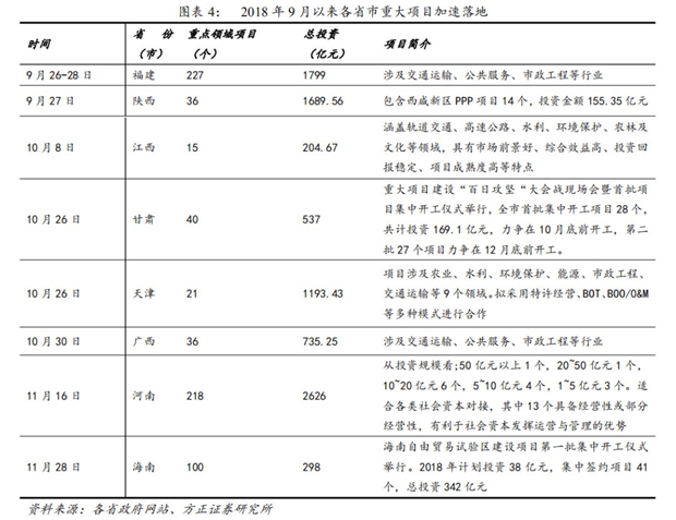 2018年年中以來,基建補(bǔ)短板政策不斷加碼。2018年7月,政治局會議、國常會分別作出要求加強(qiáng)“基建領(lǐng)域補(bǔ)短板”,此后基建補(bǔ)短板政策不斷加碼,各省市重大項目加速落地。