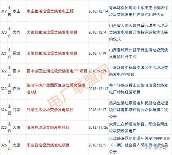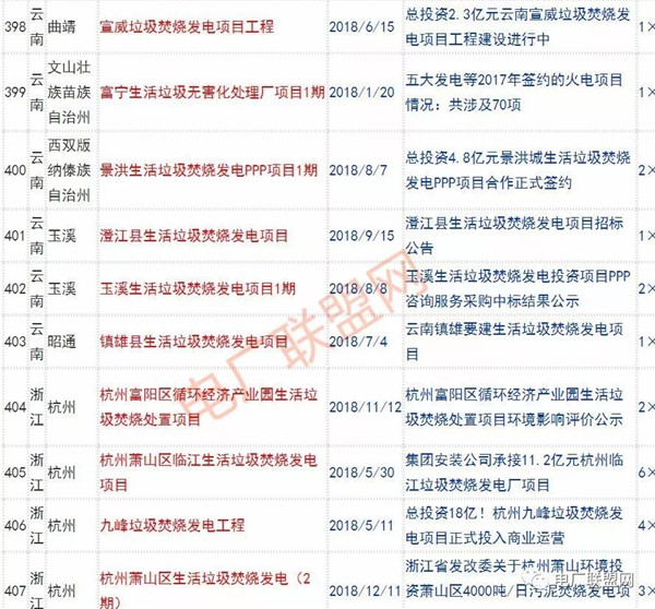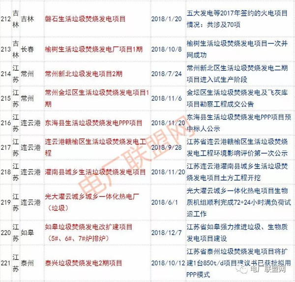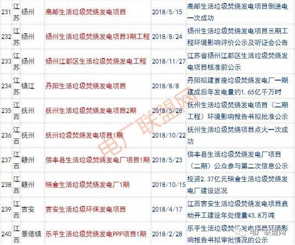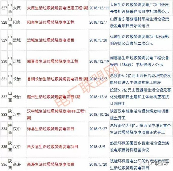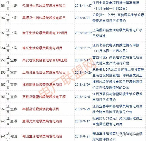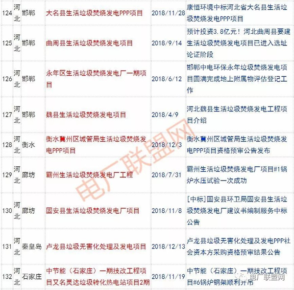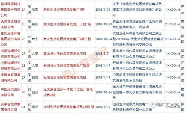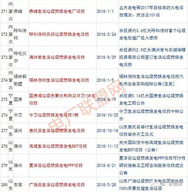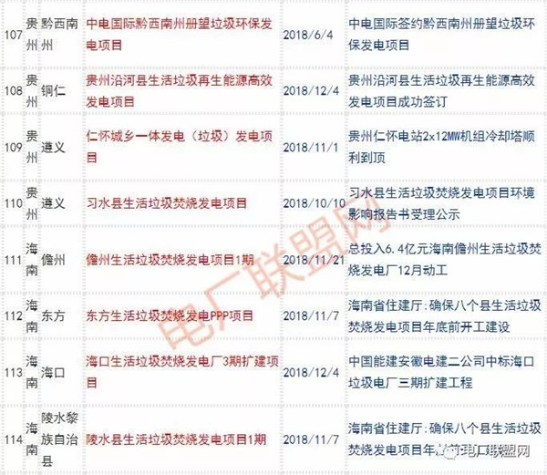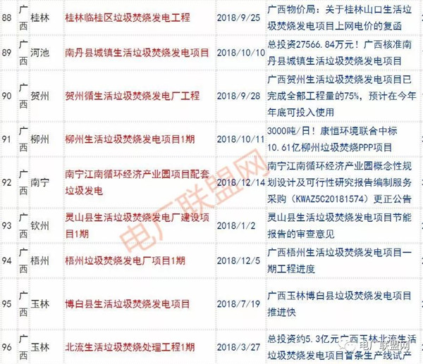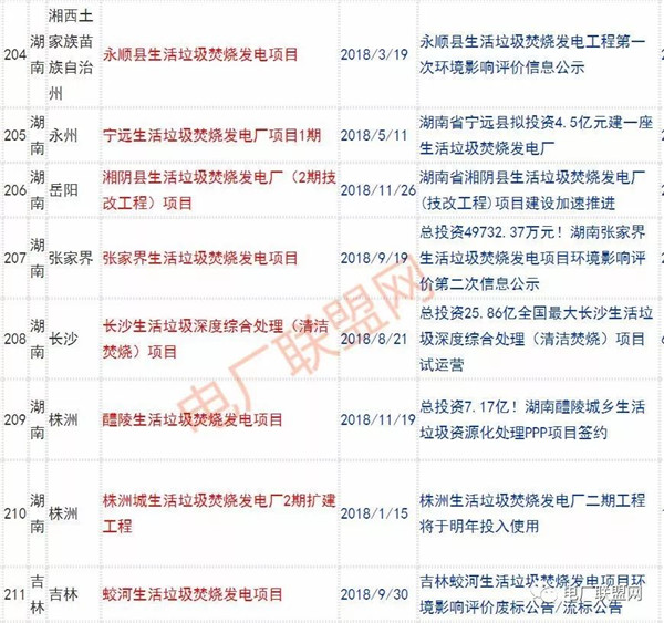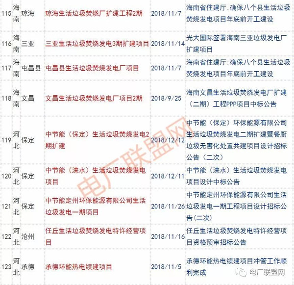 2018年新投入運行的生活垃圾焚燒廠超過70座,在建項目166座,擬建項目201座.具體項目名單如下: