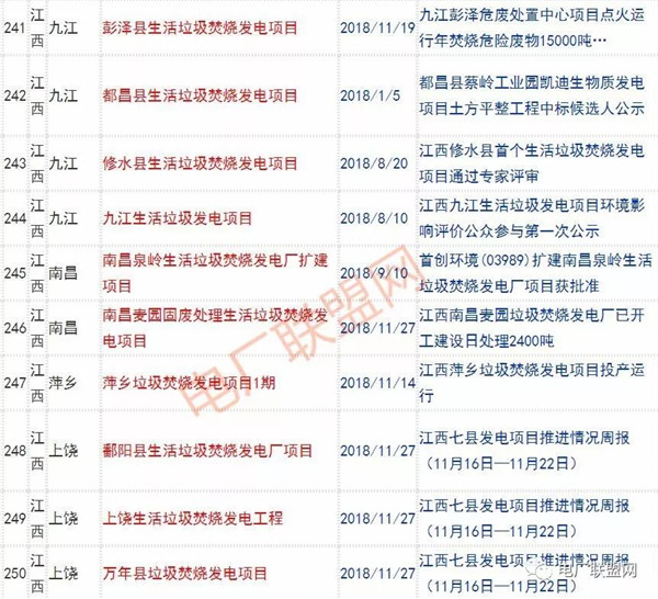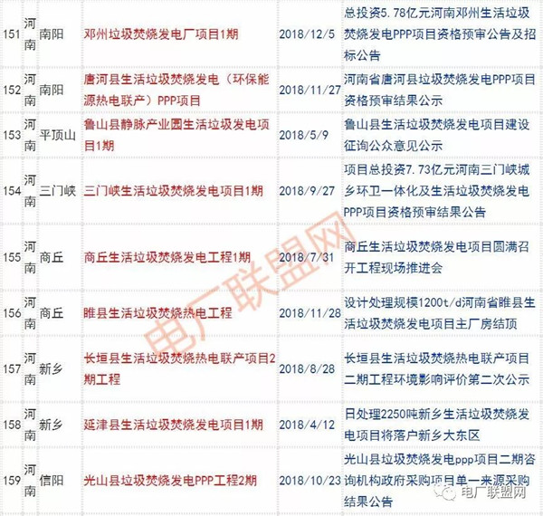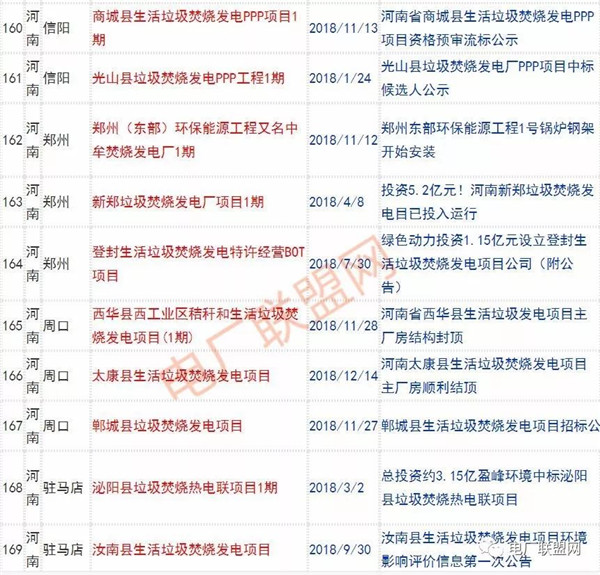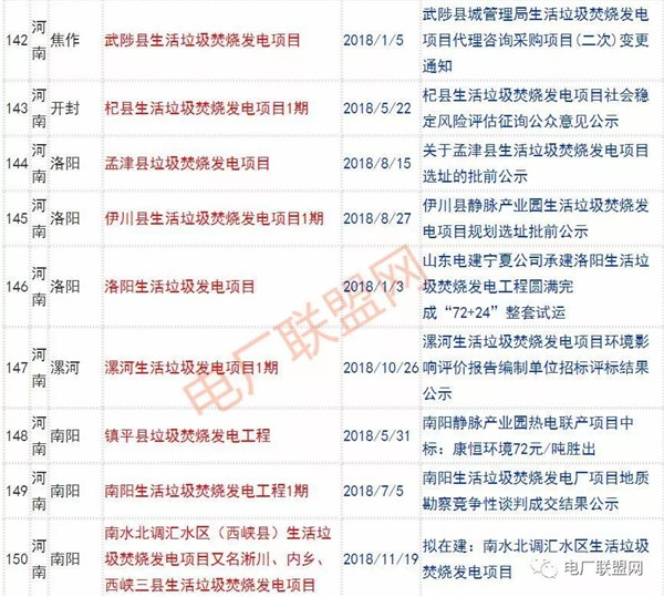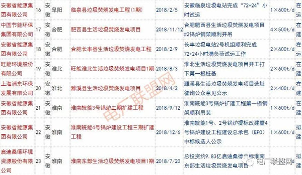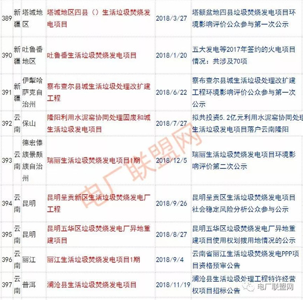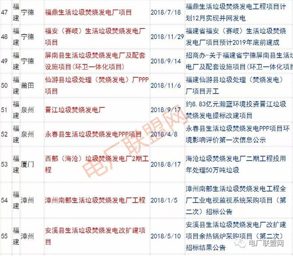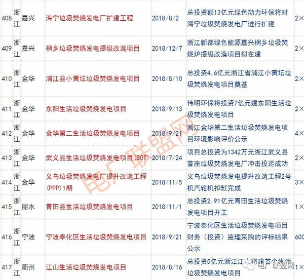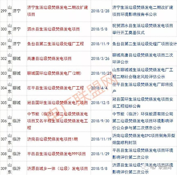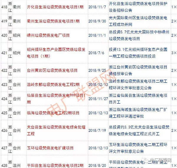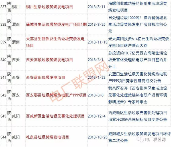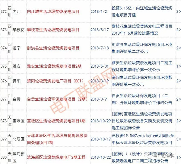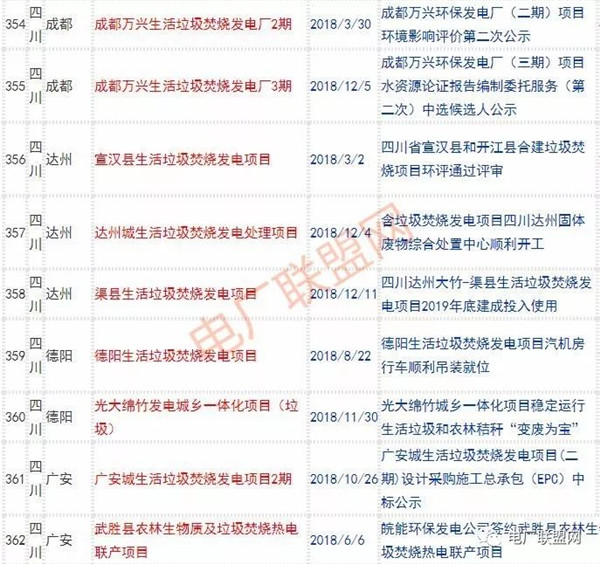 2018年新投入運行的生活垃圾焚燒廠超過70座,在建項目166座,擬建項目201座.具體項目名單如下: