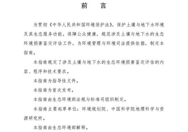 為進(jìn)一步完善生態(tài)環(huán)境損害鑒定評估技術(shù)體系,規(guī)范生態(tài)環(huán)境損害鑒定評估工作,我部組織制定了《生態(tài)環(huán)境損害鑒定評估技術(shù)指南 土壤與地下水》(見附件),現(xiàn)予印發(fā),供在開展生態(tài)環(huán)境損害鑒定評估有關(guān)工作中參照執(zhí)行。