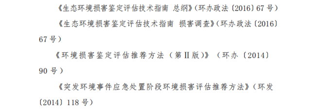 根據(jù)生態(tài)環(huán)境損害賠償制度改革工作需求,我部已于2016年6月印發(fā)《生態(tài)環(huán)境損害鑒定評估技術(shù)指南 總綱》《生態(tài)環(huán)境損害鑒定評估技術(shù)指南 損害調(diào)查》。