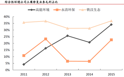 (2)專一型企業(yè):立足技術(shù)拓展市場。以建工修復(fù)和上田環(huán)境為代表的公司業(yè)務(wù)領(lǐng)域中基本不涉及其他業(yè)務(wù),屬于專一型的環(huán)境修復(fù)公司。此類公司共同的特點是重視技術(shù)能力,依托技術(shù)基礎(chǔ)尋求市場拓展。