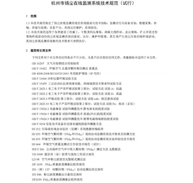 杭州市揚(yáng)塵在線監(jiān)測系統(tǒng)技術(shù)規(guī)范(試行)