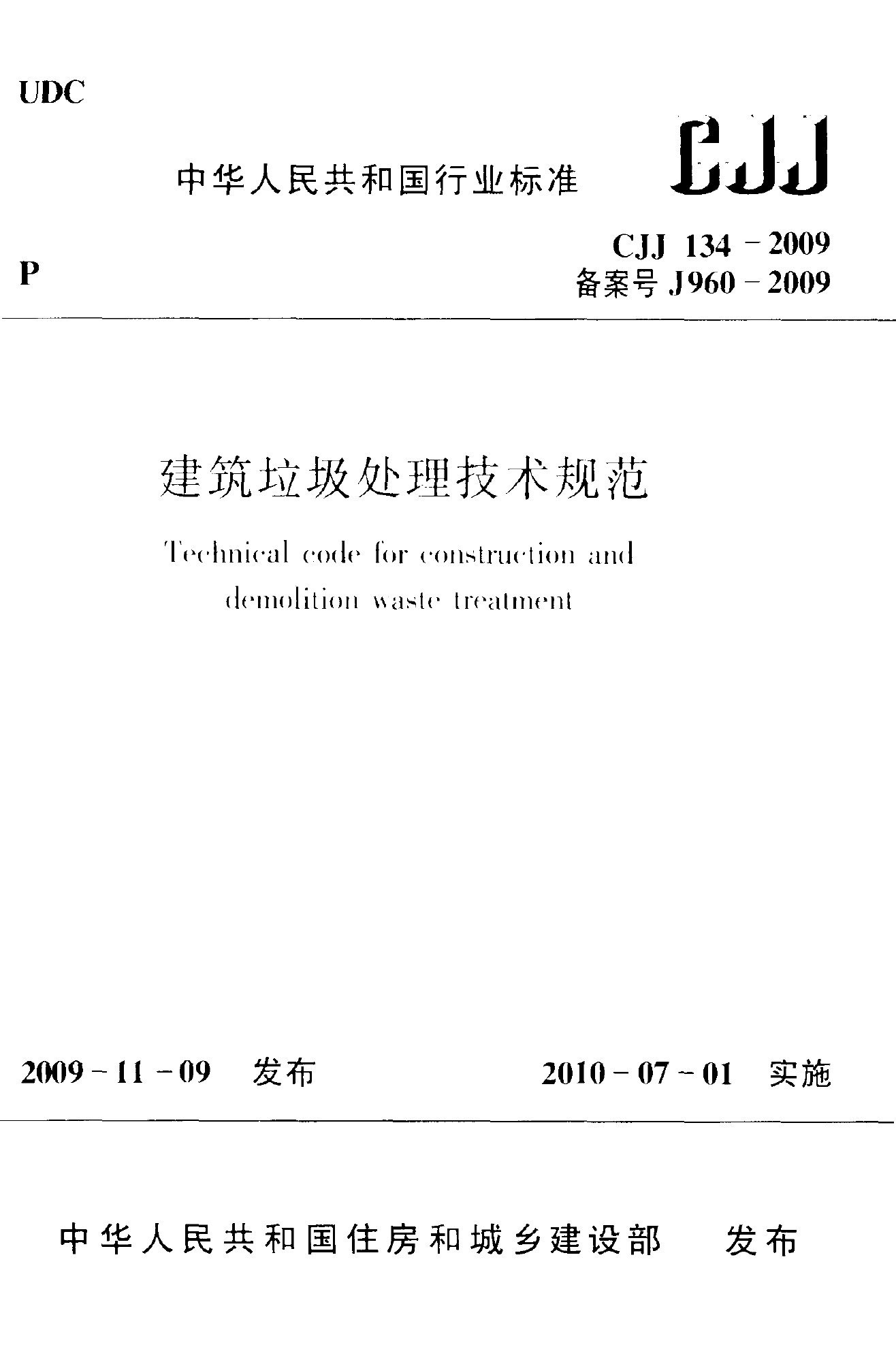 建筑垃圾處理技術(shù)規(guī)范(CJJ 134-2009)