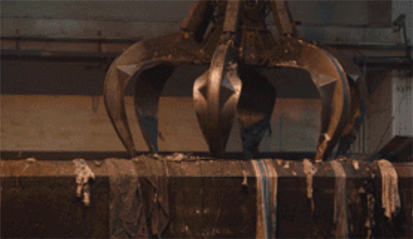 很快,就到了老港再生能源中心。每天有超過(guò)3000噸生活垃圾在這里的焚燒廠分解、發(fā)電,變廢為寶。在垃圾待焚燒庫(kù)區(qū), 6個(gè)爪子的機(jī)器抓手,像抓娃娃機(jī)一樣,強(qiáng)有力地一把抓起垃圾,靈活地送入焚燒口。這個(gè)巨大的抓手,一次可以抓送8噸垃圾。