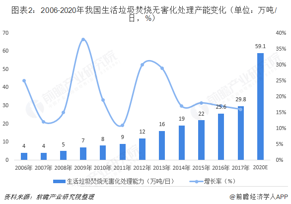 市場規(guī)模:垃圾焚燒產能持續(xù)增長,十三五規(guī)?;蜻_兩千億