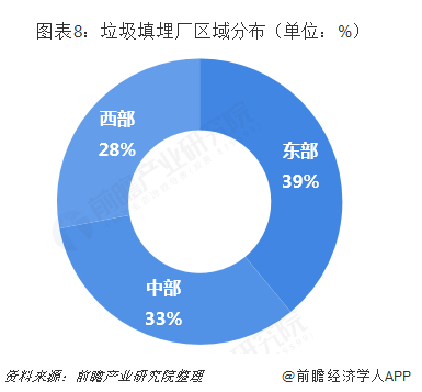在垃圾無害化處理方面,我國各地區(qū)填埋處理占生活垃圾無害化比例保持著東低中西高的趨勢,東部、中部和西部地區(qū)的生活垃圾填埋處理占無害化比例分別為52.1%、71.4%和71.2%。