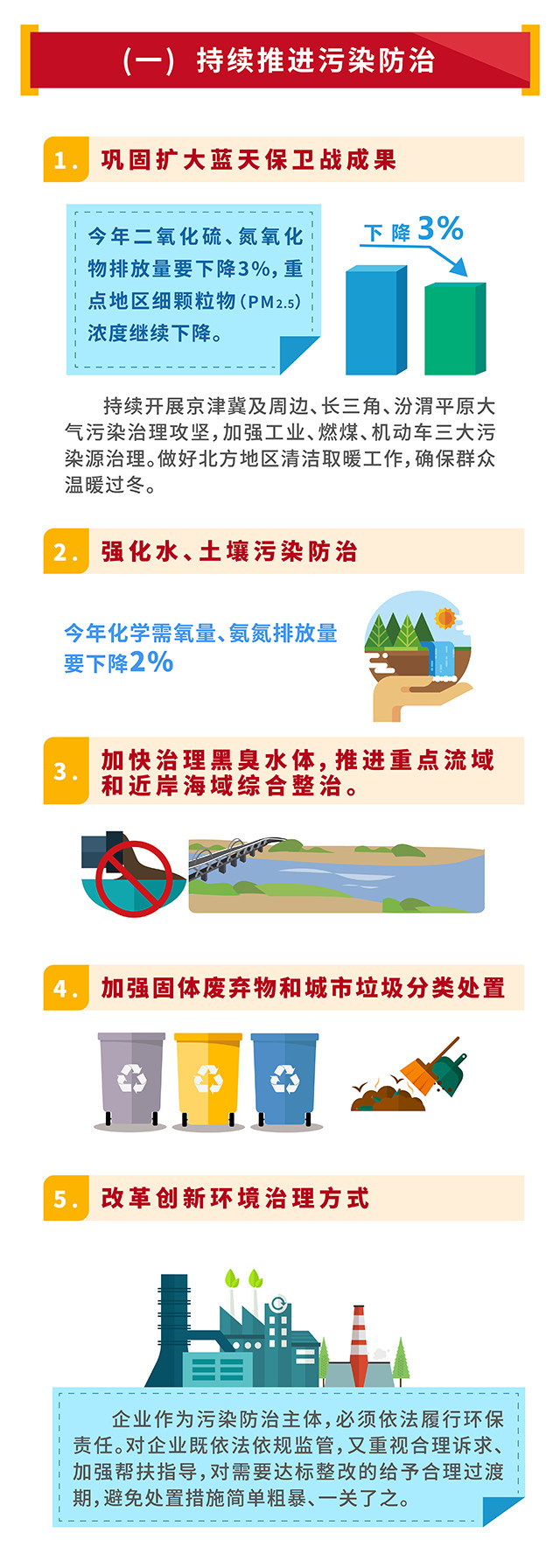 近日,生態(tài)環(huán)境部官方微信整理了今年政府工作報告有關生態(tài)環(huán)境治理方面的內(nèi)容,包括鞏固擴大藍天保衛(wèi)戰(zhàn)的成果、加快黑臭水體的污染防治等,詳情如下: