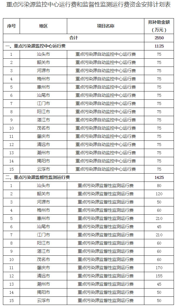 按照《廣東省省級財政專項資金管理辦法(試行)》(粵府〔2018〕120號)《關于深化省級預算編制執(zhí)行監(jiān)督管理改革的意見》(粵辦發(fā)〔2018〕17號)等要求,現(xiàn)將2019年打好污染防治攻堅戰(zhàn)專項資金安排計劃進行公示,詳見附件。