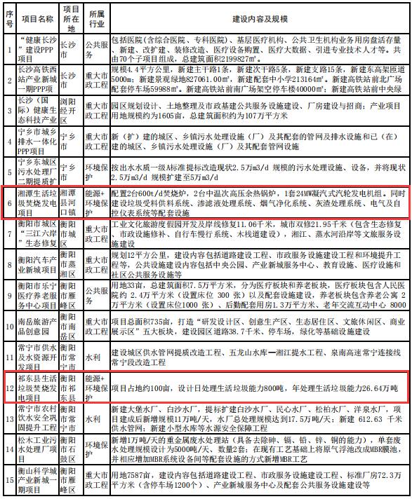 導(dǎo)讀:近日,湖南省發(fā)布了關(guān)于分解下達湖南省2019年P(guān)PP項目前期工作中央預(yù)算內(nèi)投資計劃的公示,涉及多個環(huán)保項目,其中有5個垃圾焚燒發(fā)電項目等多個固廢項目,還涉多個污水處理廠項目,詳情如下: