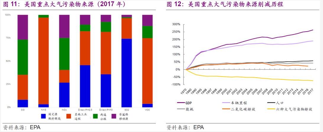 美國新車、卡車和非公路發(fā)動機使用最先進的排放控制技術(shù)。EPA要求,美國2030年與1970年相比,新車、SUV、皮卡、新型重型卡車和公共汽車對普通污染物的清潔度需高出99%;新的商業(yè)海洋船舶(非遠洋航行)對顆粒物排放的清潔度需高出90%。因此,在車輛制造領(lǐng)域,清潔排放設備的制造、新能源汽車方面依然有較強的需求。