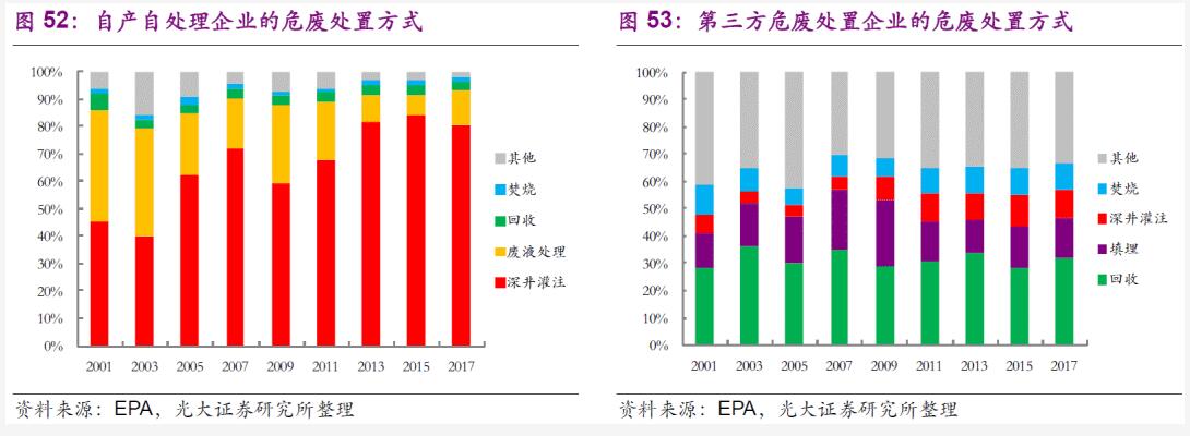 尤其是2003年伊拉克戰(zhàn)爭及美國的頁巖油、氣革命,極大的推動了美國石油化工相關(guān)產(chǎn)業(yè)的危廢治理現(xiàn)場服務、末端處置需求,也給予相關(guān)危廢從業(yè)公司以開展新業(yè)務擴展收入的重要機會。