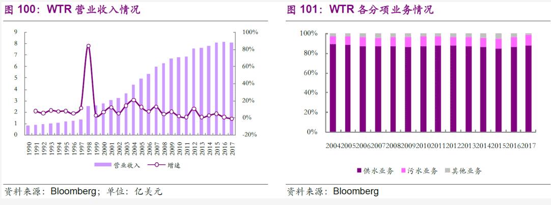 公司的供水、污水業(yè)務受制于美國水務市場化程度,內(nèi)生發(fā)展的確具有一定天花板,這是政策所決定的;但就經(jīng)營層面上分析,營業(yè)收入及盈利狀況較為穩(wěn)定也符合水務公司的核心特點,我們應將此類公司視為典型的公用事業(yè)公司。