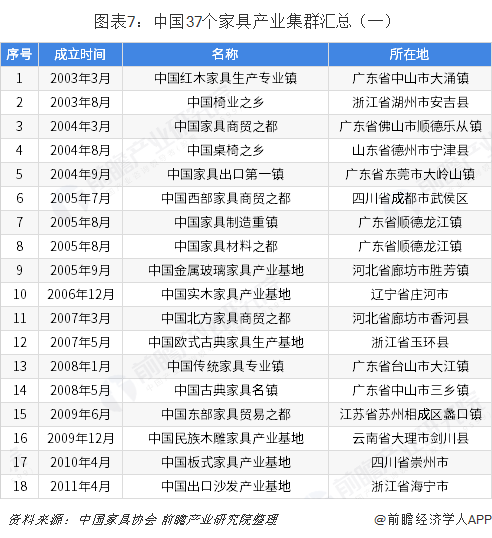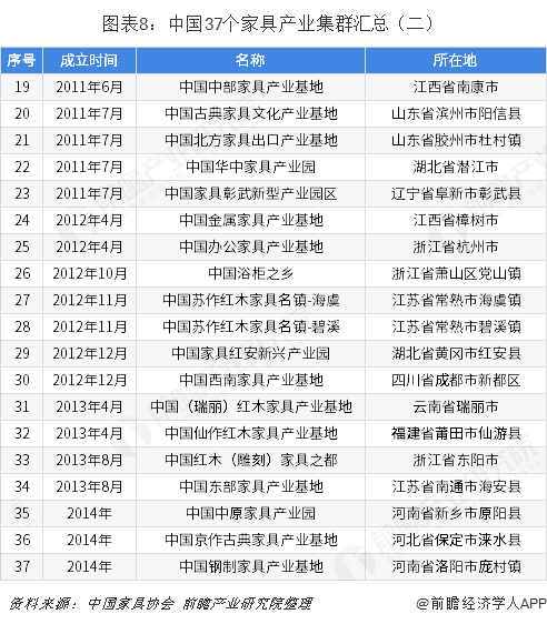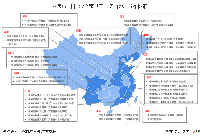中國(guó)37個(gè)家具產(chǎn)業(yè)集群地區(qū)分布圖譜