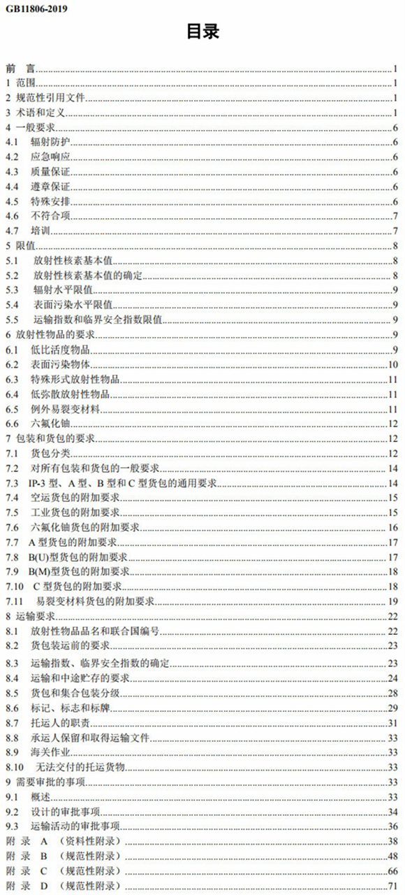 該標(biāo)準(zhǔn)自2019年4月1日起實(shí)施,自實(shí)施之日起,《放射性物質(zhì)安全運(yùn)輸規(guī)程》(GB 11806——2004)同時(shí)廢止。