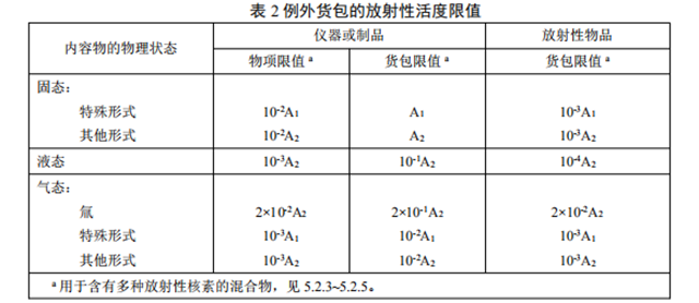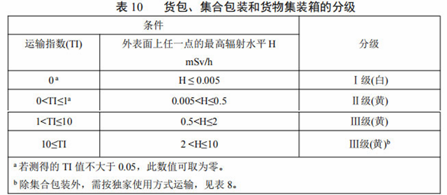 貨包或集合包裝的外表面上任一點(diǎn)的最高輻射水平應(yīng)不超過2mSv/h,滿足下列任何一項(xiàng)情況除外(詳見附件5.3.1)。