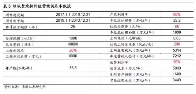 BOT模式下,垃圾焚燒項目的收入主要來自建設(shè)階段的工程收入和運營階段的運營收入。垃圾焚燒發(fā)電項目運營階段收入主要為垃圾處理費(政府補貼)以及上網(wǎng)發(fā)電收入。不同項目的垃圾處理費價格差異較大,大致在50-150元/噸的區(qū)間里,目前大部分項目的平均水平在60-80元/噸。根據(jù)2012年4月發(fā)布的《國家發(fā)展改革委關(guān)于完善垃圾焚燒發(fā)電價格政策的通知》,每噸生活垃圾折算上網(wǎng)電量為280千瓦時,執(zhí)行全國統(tǒng)一垃圾發(fā)電標桿電價每千瓦時0.65元(含稅,增值稅即征即退);超過部分電量執(zhí)行當?shù)赝惾济喊l(fā)電機組上網(wǎng)電價。