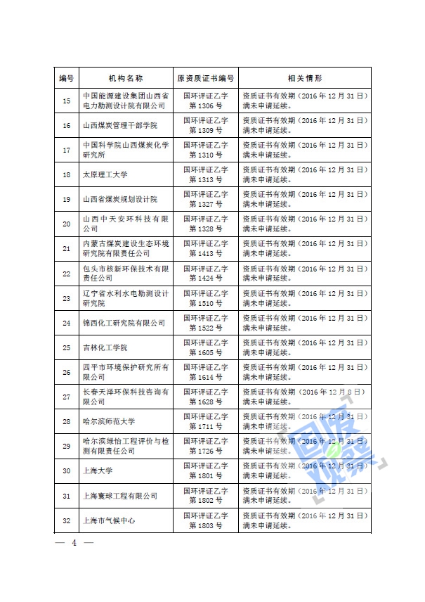 根據(jù)《建設(shè)項(xiàng)目環(huán)境影響評價(jià)資質(zhì)管理辦法》(環(huán)境保護(hù)部令第36號)規(guī)定,資質(zhì)證書有效期屆滿,環(huán)評機(jī)構(gòu)需要繼續(xù)從事環(huán)境影響報(bào)告書(表)編制工作的,應(yīng)當(dāng)在有效期屆滿九十個(gè)工作日前申請資質(zhì)延續(xù)。資質(zhì)有效期屆滿未申請延續(xù)的,我部予以注銷資質(zhì)。請各環(huán)評機(jī)構(gòu)在規(guī)定期限內(nèi)及時(shí)向我部提交資質(zhì)延續(xù)申請材料。
