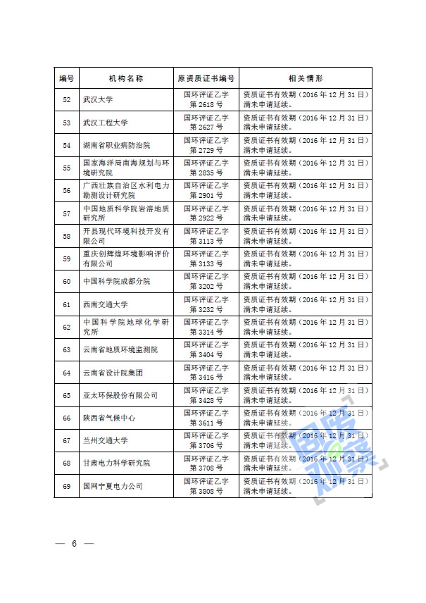 根據(jù)《建設(shè)項(xiàng)目環(huán)境影響評價(jià)資質(zhì)管理辦法》(環(huán)境保護(hù)部令第36號)的有關(guān)規(guī)定,我部對建設(shè)項(xiàng)目環(huán)境影響評價(jià)資質(zhì)(以下簡稱資質(zhì))證書有效期滿未申請延續(xù)的69家機(jī)構(gòu)資質(zhì)予以注銷(具體名單詳見附件)。