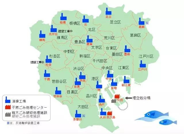 現(xiàn)在東京中心23區(qū)垃圾處理場(chǎng)分布