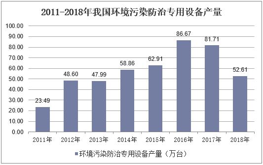隨著國(guó)家對(duì)環(huán)保的日益重視,近年來我國(guó)環(huán)境污染防治專用設(shè)備產(chǎn)量呈現(xiàn)上升趨勢(shì),2016年產(chǎn)量達(dá)最高產(chǎn)量86.67萬臺(tái),2016-2018年我國(guó)環(huán)境污染防治專用設(shè)備產(chǎn)量有所下滑,2018年為52.61萬臺(tái),同比2017年減少了29.11萬臺(tái)。