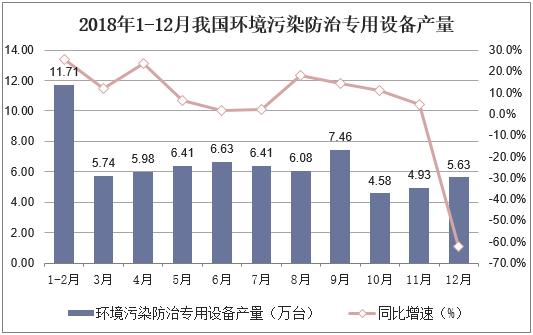 從2018年全年環(huán)境污染防治專用設(shè)備的生產(chǎn)情況來看,較之2017年,2018年1-12月份單月產(chǎn)量波動(dòng)較為明顯,其中1-12月產(chǎn)量同比均有所上漲,1-2月我國(guó)環(huán)境污染防治專用設(shè)備產(chǎn)量合計(jì)11.71萬臺(tái),產(chǎn)量下滑主要出現(xiàn)在12月份,單月產(chǎn)量5.63萬臺(tái),比2017年同期下降了62.2%。