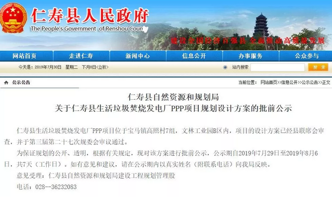 目前PPP項目規(guī)劃設(shè)計方案正在批前公示