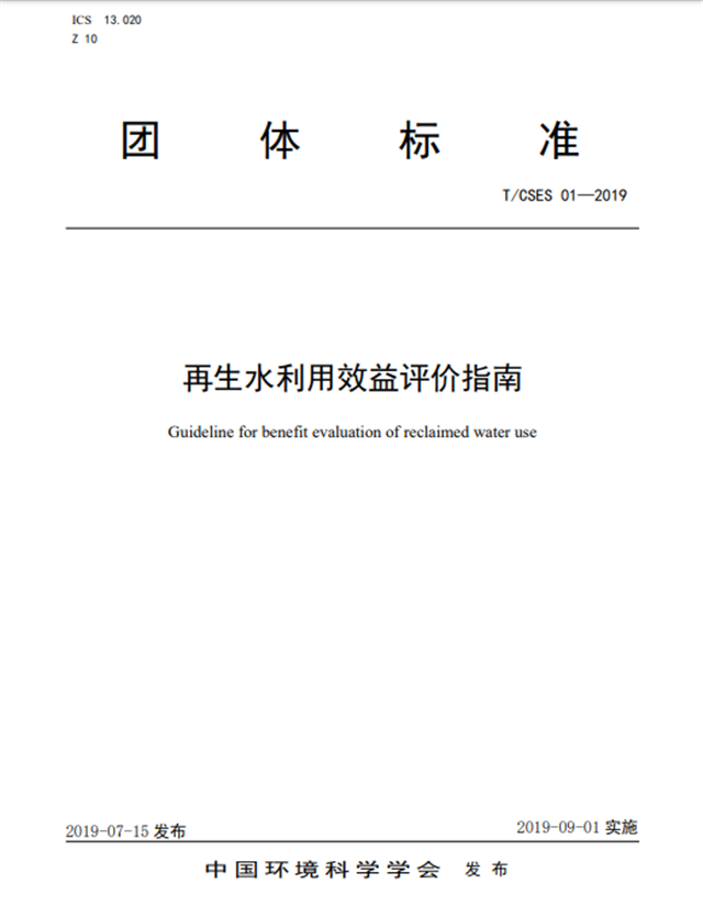 2019年7月15日,中國環(huán)境科學(xué)學(xué)會(huì)團(tuán)體標(biāo)準(zhǔn)《再生水利用效益評價(jià)指南》正式發(fā)布,標(biāo)準(zhǔn)編號(hào)為“T/CSES 01-2019”。該標(biāo)準(zhǔn)由中國環(huán)境科學(xué)學(xué)會(huì)水處理與回用專業(yè)委員會(huì)(掛靠單位:清華大學(xué))胡洪營教授團(tuán)隊(duì)牽頭,中國城市規(guī)劃設(shè)計(jì)研究院、北京市環(huán)境保護(hù)科學(xué)研究院、信開水環(huán)境投資有限公司、光大水務(wù)(深圳)有限公司等作為參編單位共同起草,充分吸納了生產(chǎn)、科研、用戶等方面有代表性的技術(shù)力量共同編寫標(biāo)準(zhǔn),形成以市場為導(dǎo)向、研究機(jī)構(gòu)為支撐、產(chǎn)學(xué)研用相結(jié)合的組織模式。