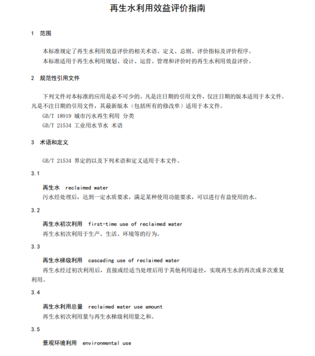 《再生水利用效益評價(jià)指南》團(tuán)體標(biāo)準(zhǔn)規(guī)定了再生水利用效益評價(jià)的相關(guān)術(shù)語定義、評價(jià)指標(biāo)及定量評價(jià)方法和程序,適用于再生水利用規(guī)劃、設(shè)計(jì)、運(yùn)營、管理和評價(jià)時(shí)的再生水利用效益評價(jià)。該團(tuán)體標(biāo)準(zhǔn)的發(fā)布,對規(guī)范再生水利用效益評價(jià)工作,指導(dǎo)再生水利用規(guī)劃、設(shè)計(jì)、運(yùn)營、管理、評價(jià),提高再生水利用效益,促進(jìn)再生水資源的合理、高效開發(fā)與利用具有積極意義。