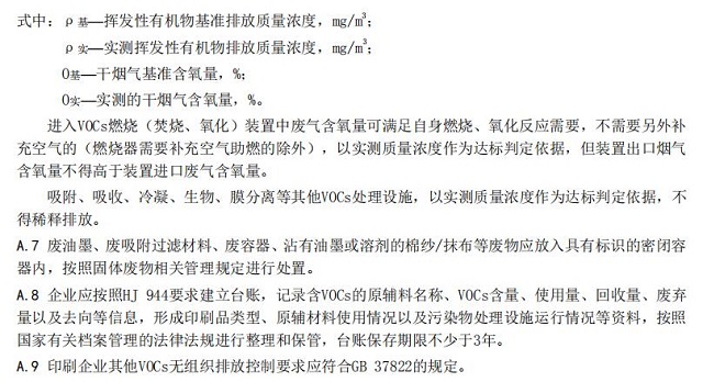 3.9 揮發(fā)性有機物 volatile organic compounds(VOCs) 參與大氣光化學反應的有機化合物,或者根據(jù)規(guī)定的方法測量或核算確定的有機化合物。 在表征 VOCs 總體排放情況時,根據(jù)印刷業(yè)特征和環(huán)境管理要求,本標準采用非甲烷總烴(以 NMHC 表示)作為污染物控制項目。