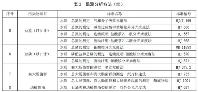5.3 本標(biāo)準(zhǔn)各項目監(jiān)測分析方法按照表2 執(zhí)行。本標(biāo)準(zhǔn)發(fā)布后,國家新發(fā)布的其他相關(guān)監(jiān)測分析方法也可作為本標(biāo)準(zhǔn)的監(jiān)測分析方法。