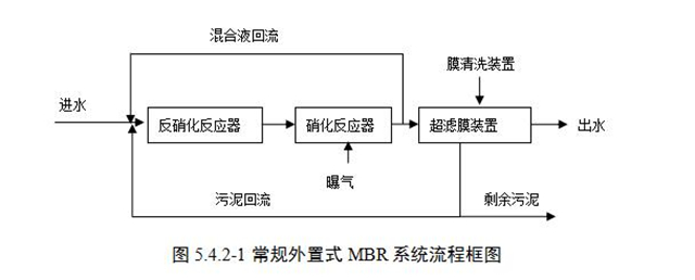 生物反應(yīng)器與膜組件相對(duì)獨(dú)立,通過(guò)混合液循環(huán)泵施加外壓使處理水通過(guò)膜組件后排出的一種膜生物反應(yīng)器(MBR)類型。