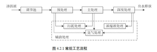 4.2.3生活垃圾焚燒發(fā)電廠、生活垃圾轉(zhuǎn)運(yùn)站等垃圾處理設(shè)施產(chǎn)生的滲瀝液,處理工藝宜選擇“預(yù)處理+主處理+深度處理”組合工藝。