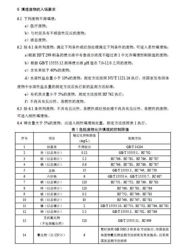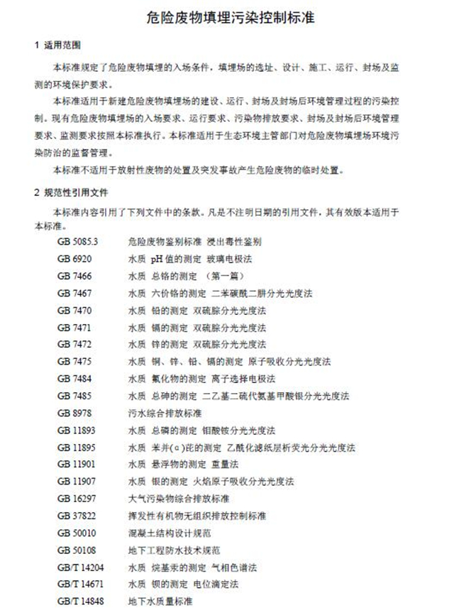 危險廢物填埋污染控制標(biāo)準(zhǔn)(GB 18598-2019)。