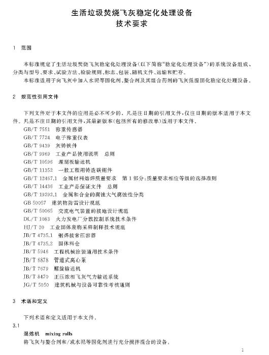 日前,住建部發(fā)布行業(yè)標(biāo)準(zhǔn)《生活垃圾焚燒飛灰穩(wěn)定化處理設(shè)備技術(shù)要求》。標(biāo)準(zhǔn)將于2019年12月1日起實(shí)施。