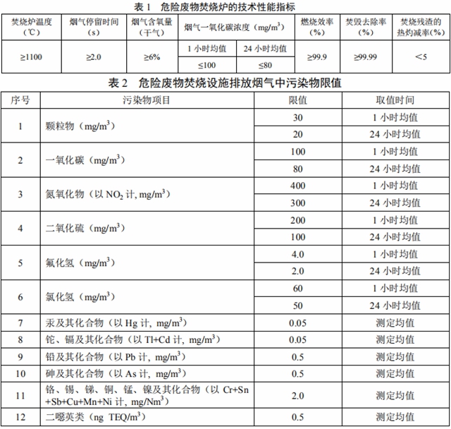 《危險廢物焚燒污染控制標準》