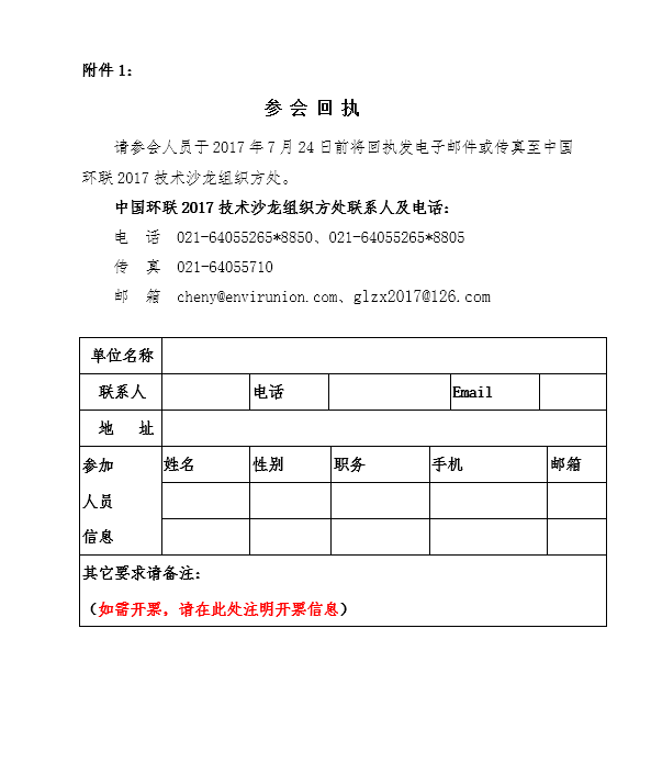 本次技術(shù)沙龍收取會議費:800元/人,中國環(huán)聯(lián)會員企業(yè)每家可免費2人參加。