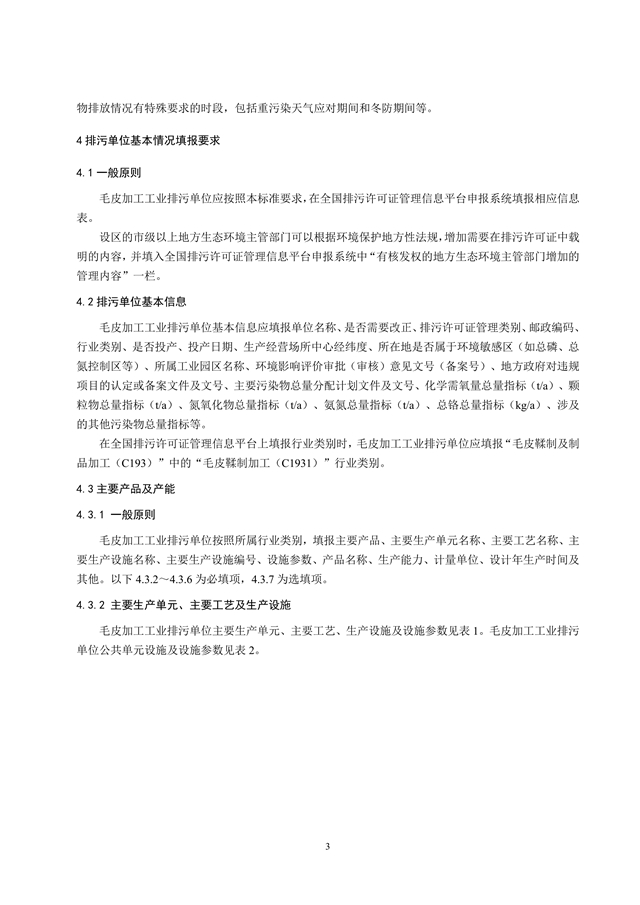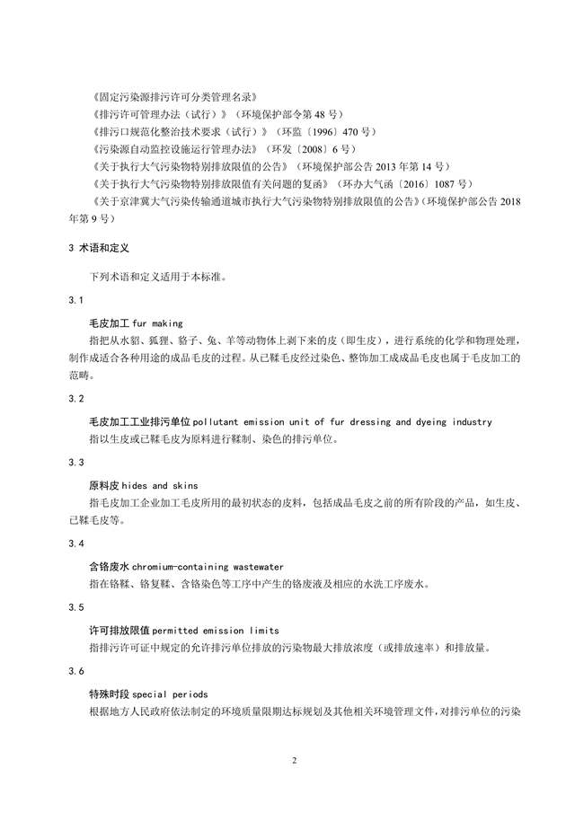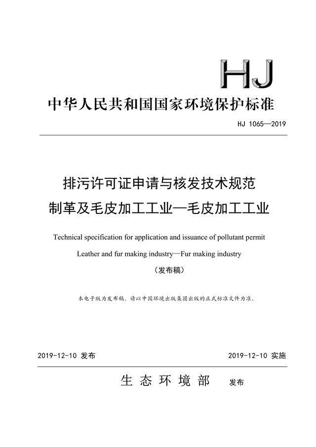 Technical specification for application and issuance of pollutant permit Leather and fur making industry—Fur making industry